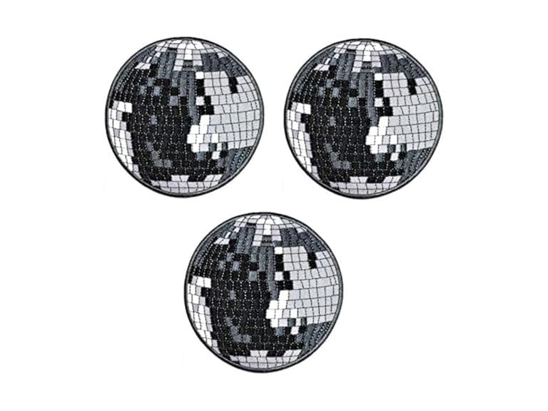 - (1) Umama Patch Set of 3 Cute Ball Disco Craft Fabric Music Party Light Ball Disco Crystal Cartoon retro fun embroidered applique iron on patch for Backpacks Jeans Jackets T-Shirt Clothing