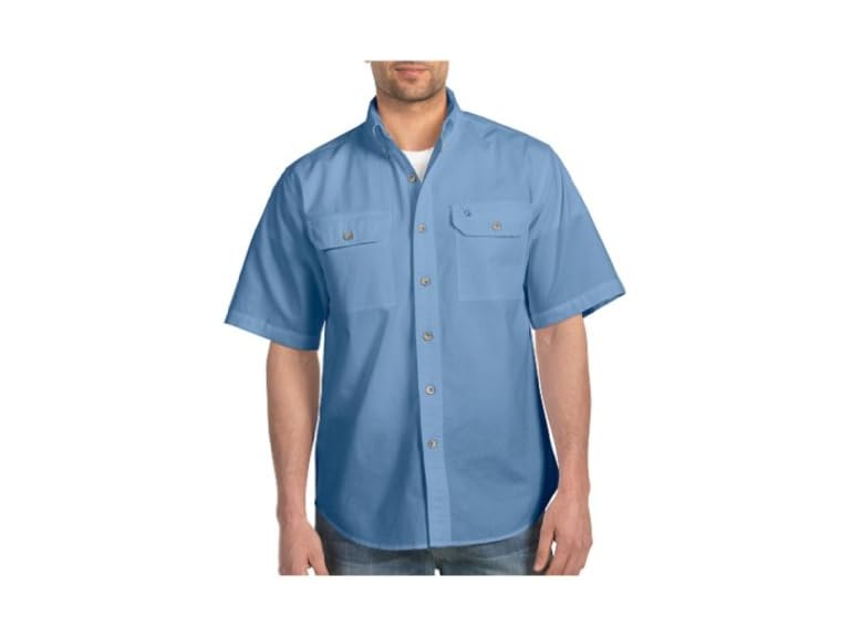 - (1) Carhartt Men's Fort Solid Short Sleeve Shirt, Blue Chambray, Small