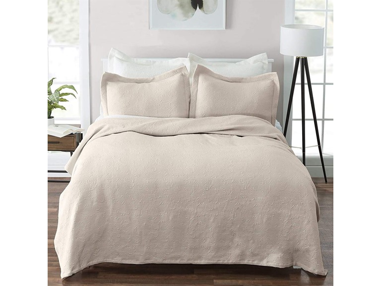 - (1) Royal Borough 3-Piece Matelassé Bedspread Set | 100% Cotton Quilt | Choose Color