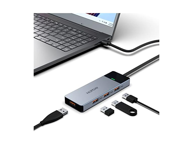 - 【Ultra Fast USB 3.2】 ⚡ Adapting newest technology,20x faster than USB 2.0, the laptop USB hub Offers SuperSpeed transfer of 10 Gbps, and down to 480Mbps (USB 2.0) and 12Mbps (USB 1.1).Transfering an HD movie under 2.5 seconds. Please mind that pluging in external power adapter to some HDDs and SSDs might need higher power supply ⚡