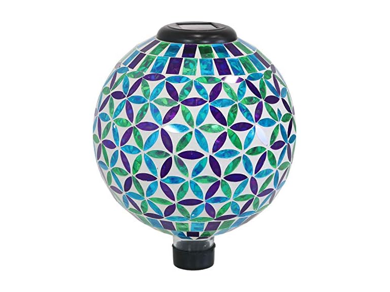 - ADD SOOTHING SHADES OF BLUE TO OUTDOOR SPACES: The gazing ball globe is made from glass with a mosaic design that resembles blooming flowers. Several beautiful shades of blue create a calming environment in the garden, on the patio, or in flower beds.