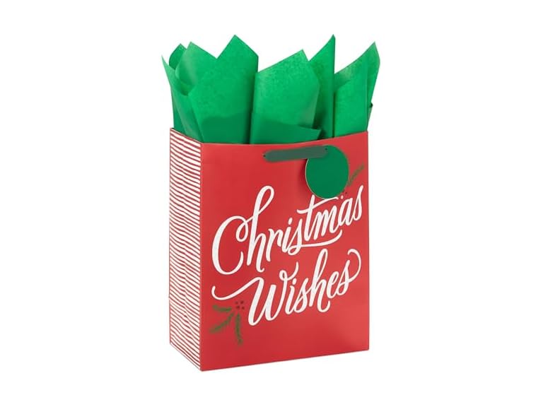 - (1) Hallmark 13" Large Christmas Gift Bag with Tissue Paper and Gift Tag (Glitter Christmas Wishes) for Kids, Adults, Friends, Family