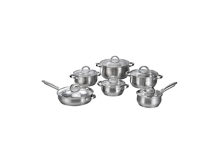 - (1) 12-Piece Induction Ready Stainless Steel Cookware Sets with Glass Lid, Silver on Cookware Sets Stainless Steel