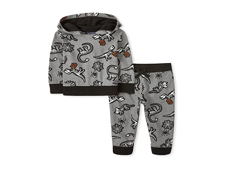 - (1) The Children's Place,Toddler Boys Halloween Long Sleeve Skeleton Dino Print Hoodie and Fleece Jogger Pants 2-Piece Set,H/T Hound,9-12MOS