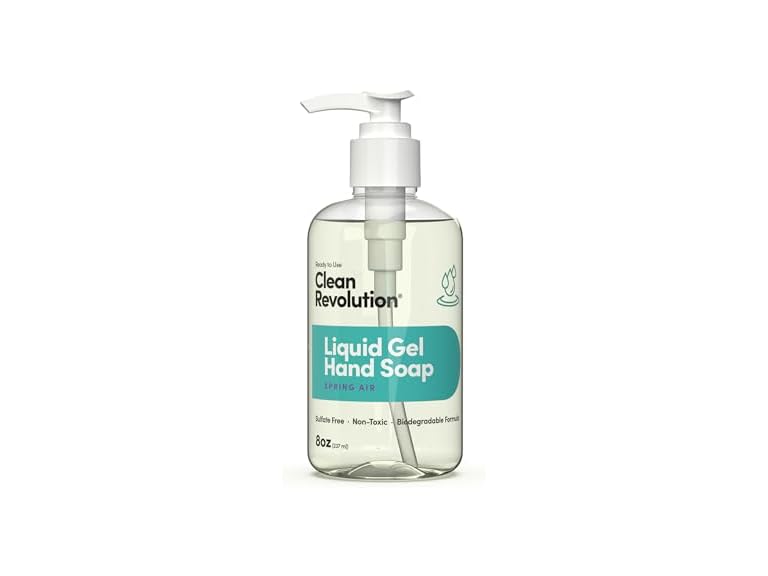 - (1) Clean Revolution Liquid Gel Hand Soap, Silky Rich Liquid, Quick Lather, Fast Rinsing, Contains Real Essential Oils (Spring Air) 8 Fl Oz