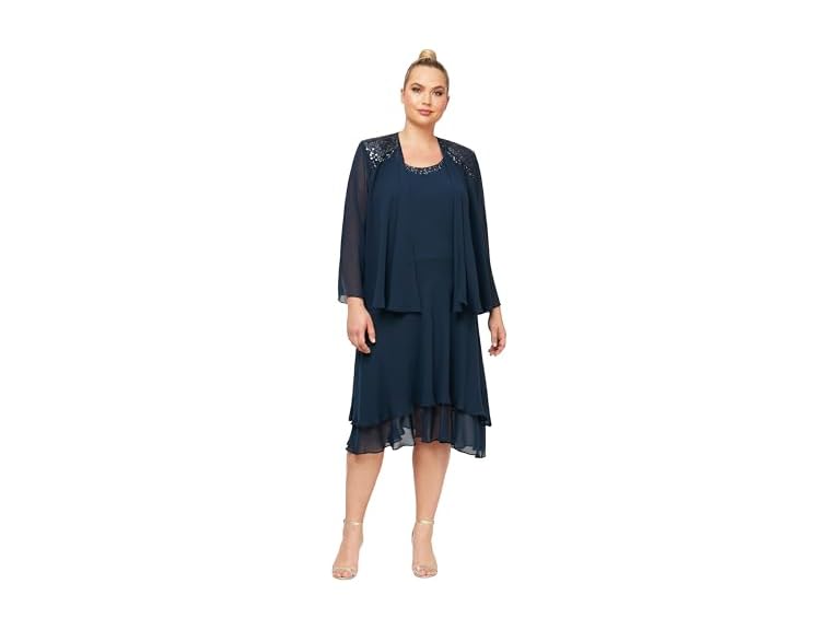- (1) S.L. Fashions Women's Mother of The Bride Dress with Embellished Neckline & Shoulder, Wedding Guest (Petite and Regular Sizes), Navy, 16