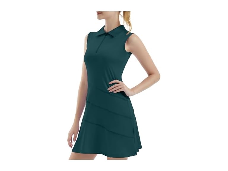 - (1) FKEEP Women's Tennis Golf Dresses Zipper V-Neck Sport Activewear with Shorts and Pocket Workout Athletic