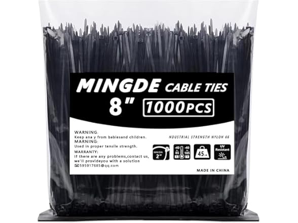 - (1) MINGDE Cable Ties 8 (1000 Pack) Black, Tensi