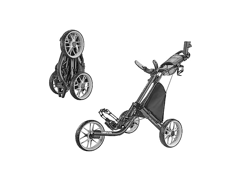 - WHEELS & STABILITY: A 3 wheel golf push cart with 10.5" EVA front and dual 11.5" EVA rear wheels. Wide wheelbase ensures stability, while front wheel alignment keeps this push golf cart moving straight, making it a versatile push carts for golf bags.