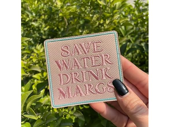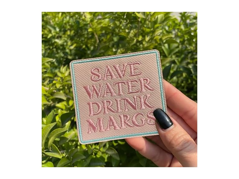 - (1) CALATALLY Save Water Drink M*RGS Patch 3 Inches Funny Quote Alcohol Sarcastic Summer Iron On/Sew On Embroidery Fabric Applique Patches for Trucker Hats Clothes Backpack DIY Accessories Friends Mom Gifts