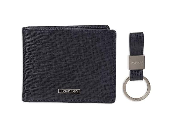 - CK STYLE: Stay organized and stylish with this essential leather bifold wallet and key fob set from Calvin Klein. Keep your essentials together in style with this perfect duo.