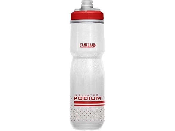 - (1) CamelBak Podium Chill Insulated Bike Water Bottle - Easy Squeeze Bottle - Fits Most Bike Cages - 24oz, Fiery Red/White