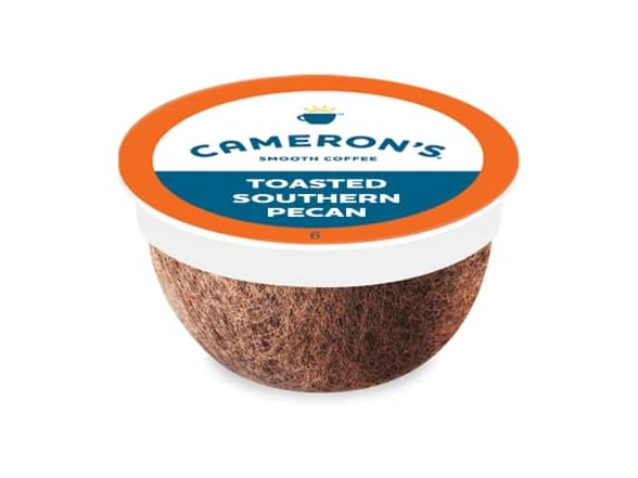 - QUICK AND EASY: One box of 12 Toasted Southern Pecan single serve, compostable, coffee pods. Cameron's Coffee strives to provide the convenience of a single serve pod with the quality of café brewed coffee.