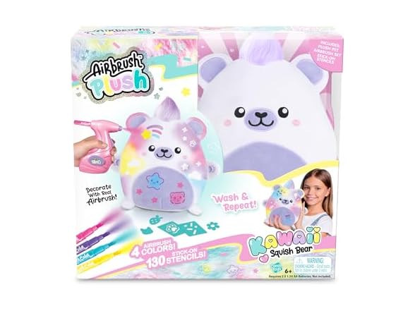 - Canal Toys Airbrush Plush Kawaii Squish Bear: Includes Plush Bear, Airbrush Set and Stick on Stencils; Color and wash and Repeat; Create Your own Style