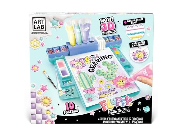 - The Fluffy Paint Studio is a complete creative workshop to learn how to make original works with 3D effects. Thanks to the dual technique of water painting and relief painting, children can express their imagination and create unique posters.