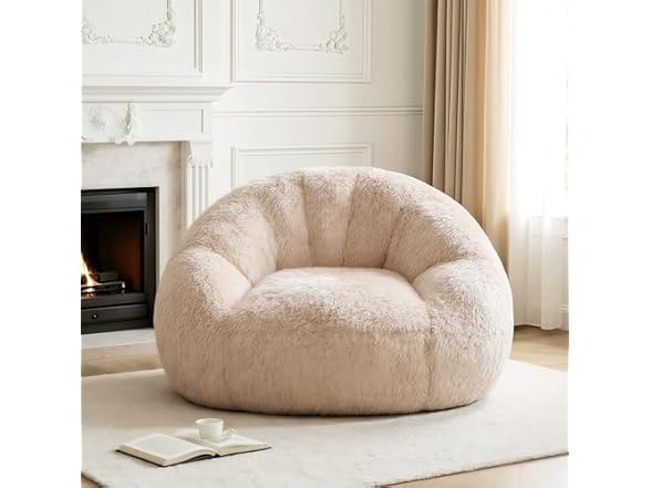 - (1) CangLong Large Bean Bag Chair with Filler, Plush Fluffy Shell Design Lounger for Adults, Ergonomic Reading Gaming Chair for Bedroom, Living Room, Dorm, Game - Taupe, 400lbs Support
