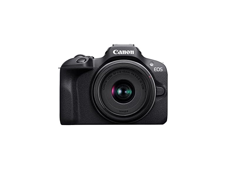 - (1) Canon EOS R100 RF-S18-45mm F4.5-6.3 is STM Lens Kit, Mirrorless Camera, RF Mount, 24.1 MP, Continuous Shooting, Eye Detection AF, Full HD Video, 4K, Lightweight, Wi-Fi, Bluetooth, Content Creation