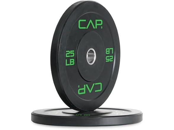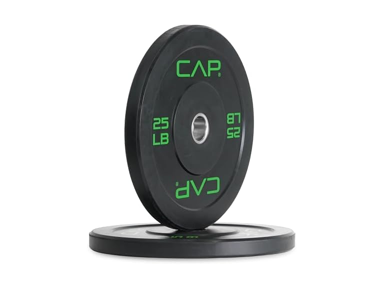 - (1) CAP Barbell Economy Olympic Bumper Plate Set with Green Logo, Black, 25lbs Pair