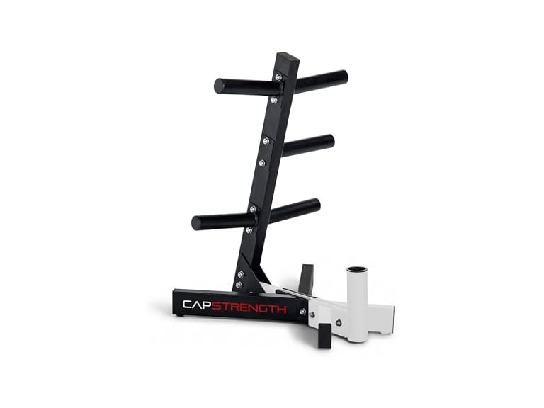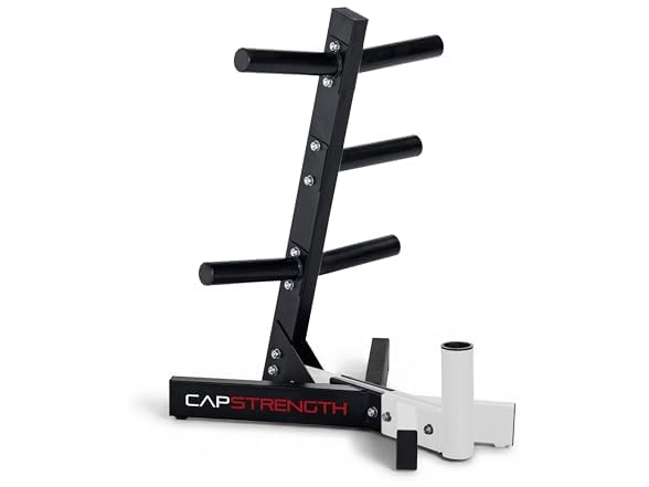 - (1) CAP Barbell Olympic Plate Tree Storage Rack for Weights and Bar, White