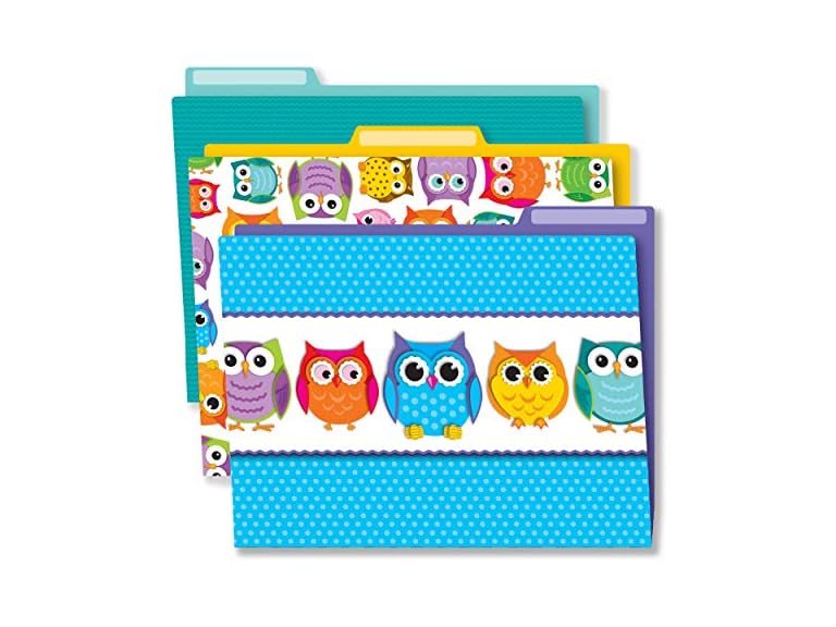 - (1) Carson Dellosa Owl Decorative File Folder Set—11.75" x 9.5" Colored File Folders for Filing Cabinet, for Office or Classroom File Organization (6-Pack)