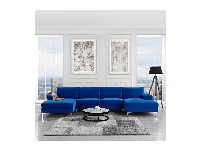 - BEAUTIFUL, VELVET SOFA : Family room / living room sectional sofa with an extra wide double chaise lounge for maximum comfort and space.