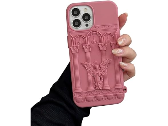 - (1) Ownest Compatible for iPhone 13 Pro Max Case with Silicone 3D Cute Angel Statue Retro Pattern Fashion Simplicity Design Aesthetic Women Teen Girls Phone Shockproof Cover -Red