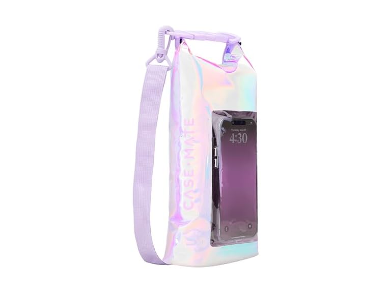 - Stylish Protection with 1-Year Coverage: Explore Case-Mate's chic and protective Water Bag for Phone — blending luxurious design with enhanced durability since 2005 The Casemate beach bag set keeps your essentials dry with its waterproof sling bag in an Iridescent finish, featuring a built-in waterproof pouch for swimming, along with a detachable fuchsia keychain lanyard.