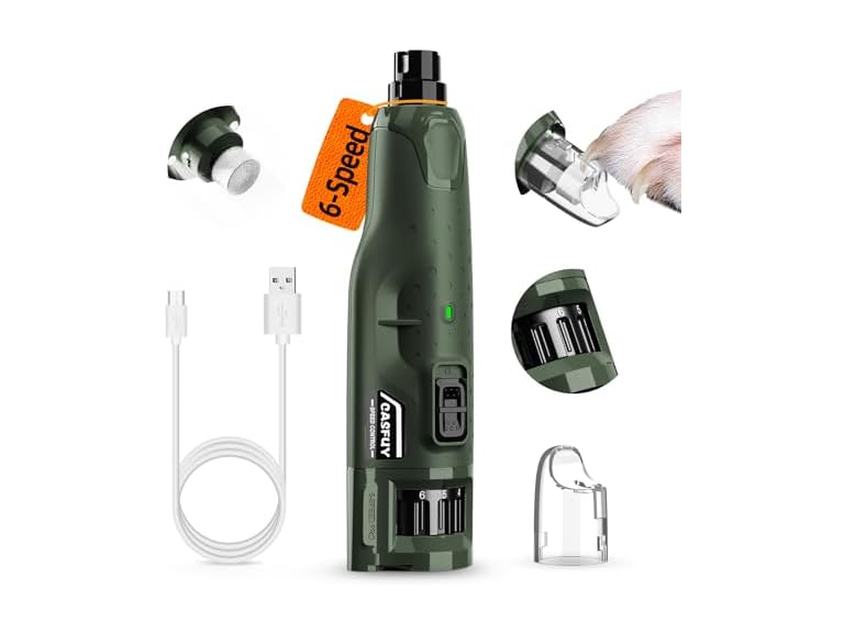- 🔥6 adjustable speed(7000-12000RPM), user-friendly to both experienced and novice user: Casfuy dog nail grinder Offers six adjustable grinding speeds. Turn off the nail grinder using power switch directly to ensure your preferred speed are saved and ready for future use.