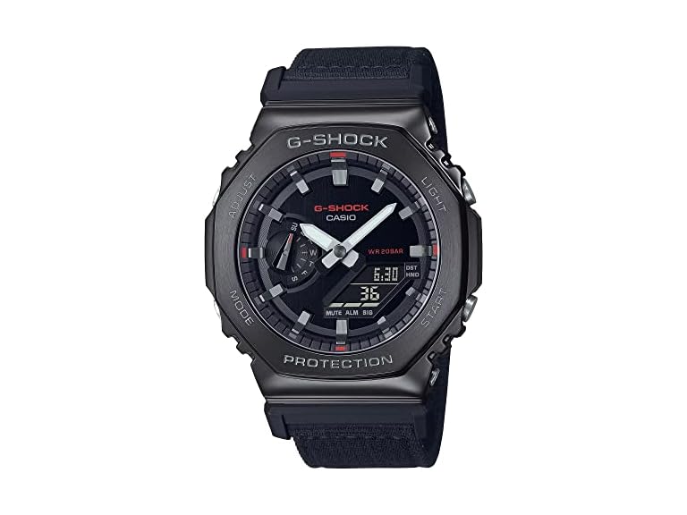 These innovative watches take the iconic octagonal form and metal-clad design of the GM-2100 line and pair it with a rugged fabric band in an utilitarian color that goes with any outfit.