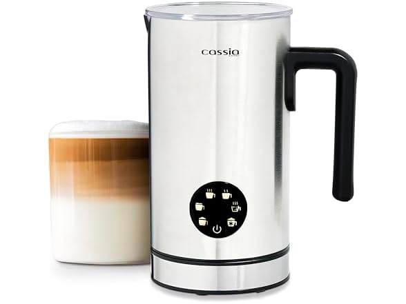 - Cassia Electric Milk Frother, Magnetic Touch Screen Control, 5 Functions Including Chocolate and Cold Milk, 550W, 160ML Frothing & 300ML Heating Capacity, Stainless Steel