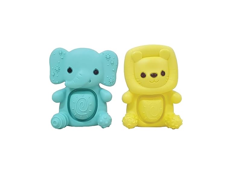(1) Infantino Teethimal Pop Pals - Elephant & Lion Sensory Popper Toy with Soothing Teething Textures for Infants & Toddlers, 6M+