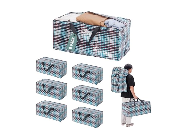 - Heavy Duty & Sturdy: The 6-pack large moving bags are made of high-quality, water and wear-resistant polyethylene to ensure the bags can withstand heavy loads and regular use. The bags feature sturdy double zippers and reinforced stitching for added strength and durability