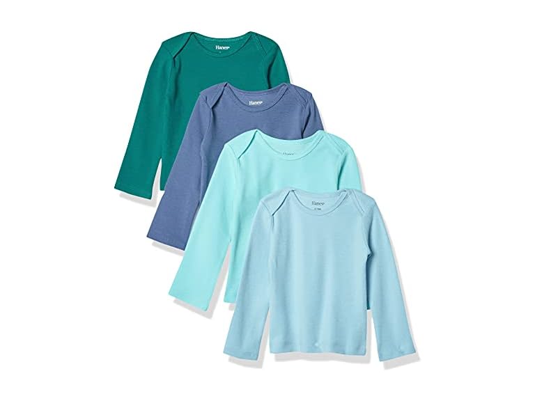 - (1) Hanes Ultimate Baby Boys Flexy 4 Pack Long Sleeve Crew Tees, Blue/Green, 0-6M