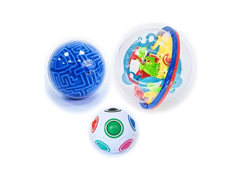 - (1) SOBIVA 3D Maze Puzzle Ball Game - Magic Rainbow Brain Teaser, Fidget Toys Sets, Jigsaw Sphere Globe - Gifts for Kids and Adults, 3 Sets
