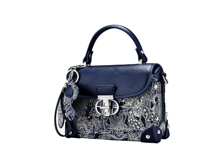 - Fashionable Design: Experience ultimate sophistication with the Crysnolli top-handle bag. Adorned with intricate and exotic embroidery patterns featuring birds and flowers in rich blue tones, this bag exudes luxury and charm. It comes with a charming key chain accessory that adds a touch of personality,making it an ideal accessory for any occasion—be it work, business meetings, romantic dates, daily errands, travel, or school. This stylish design ensures you stand out with elegance and comfort.