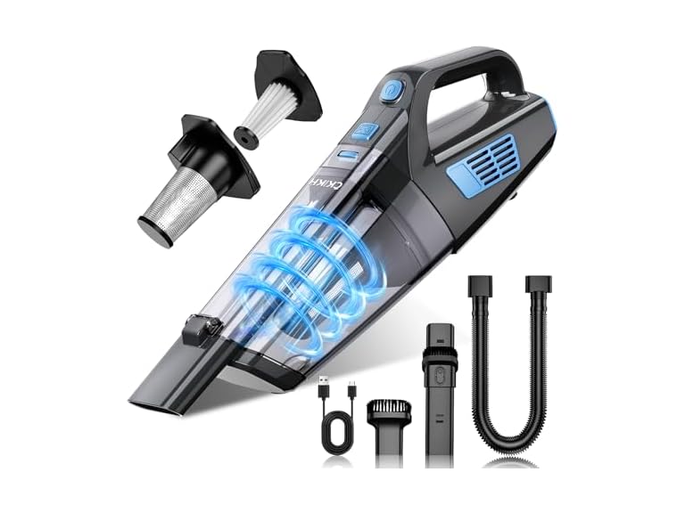 - 【15000PA CYCLONIC STRONG SUCTION】This handheld vacuum cleaner delivers 15000PA powerful suction with advanced cyclonic technology, which effectively takes dust and debris away. While equipped with a 72000RPM high-speed motor, it provides thorough deep cleaning on cars, carpets, floors, and tight spaces. The cyclonic action ensures consistently strong suction power and keeps the filter clean for longer—making it perfect for home, car, and stubborn pet hair cleaning