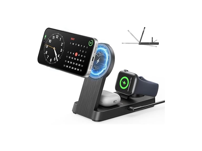 - 3 in 1 Wireless Magnetic Charger Fast Charging: 1> Fast Charging Charger For iPhone 12-17 (Compatible MagSafe ) & Apple Watch Series 2-10/SE & AirPods Pro 2/3/4 Wirelessly. 2> Strong magnetic alignment ensures perfect charging position for iPhone.