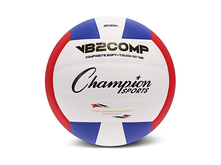 - (1) Champion Sports VB Pro Comp Series Indoor Volleyball, Official Size - Durable, Soft-Touch Volleyballs with Composite Synthetic Leather Cover - Premium Volleyball Equipment and Gear - Red/Blue/White