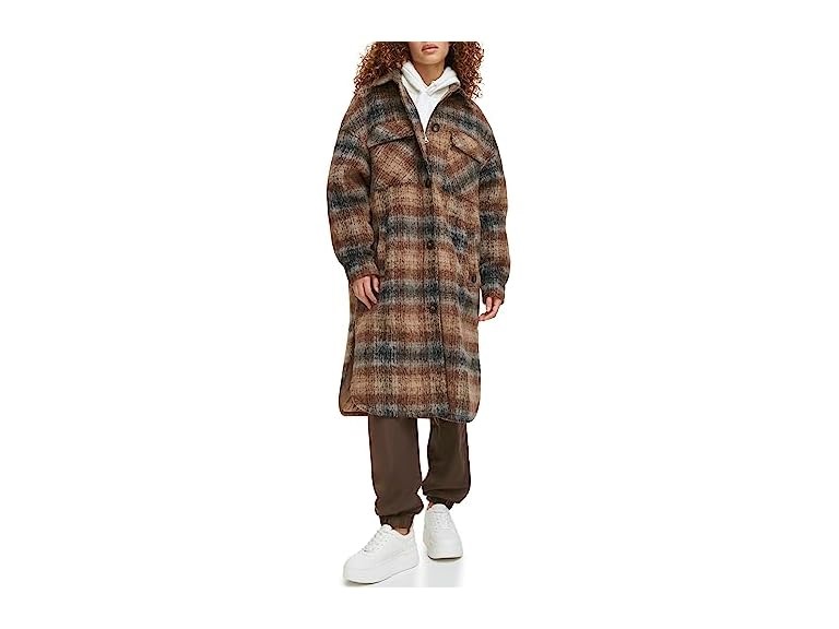 - (1) Levi's Women's Long Plaid Shirt Jacket, Brown Plaid, Large