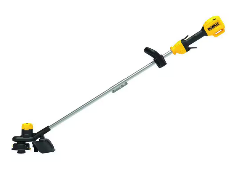 The DEWALT 20-Volt MAX String Trimmer provides precise power and runtime control with a variable speed trigger. The patented gear drive design provides more torque and maintains cut speed under load, while the dual-line bump feed head clears a full 13 in. The string trimmer is easy to maneuver and puts less stress on the user. Battery and charger sold separately.