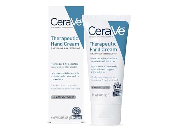 (1) CeraVe Therapeutic Hand Cream for Dry Cracked Hands With Hyaluronic Acid and Niacinamide, Fragrance Free 3 Ounce