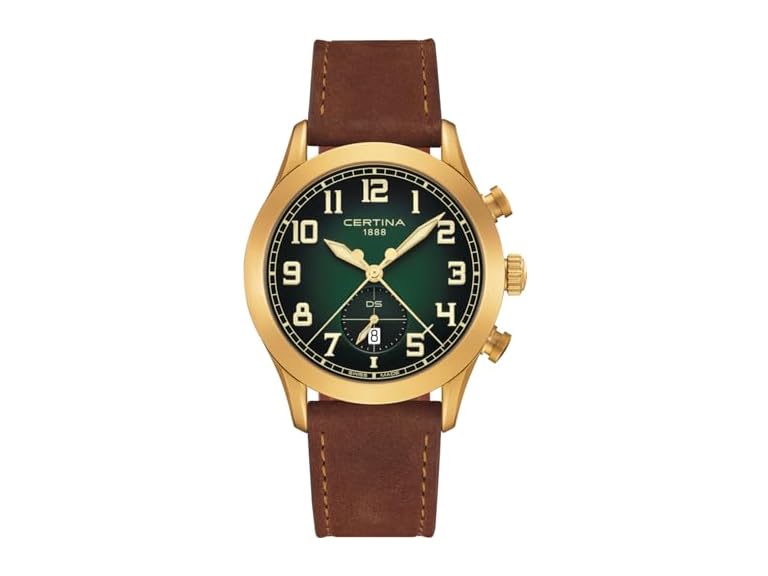 - Certina, Mens, DS Pilot, Stainless Steel, Swiss Quartz, Watch, Green Gradient, Faux Leather, 22, (C0246173609200)