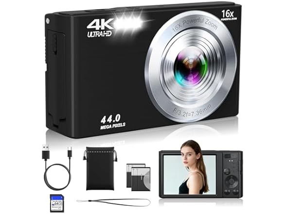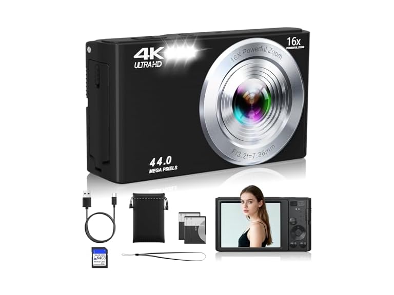- 44 MP & FHD 4K Digital Camera for Photography: The 2025 compact camera support premium 44MP photos and 4K HD video recording. Advanced CMOS technology ensures precise detail,capture vivid picture for preserving your every important moment.The 16x digital zoom point and shoot camera is ideal for beginners to capture distant scenery.