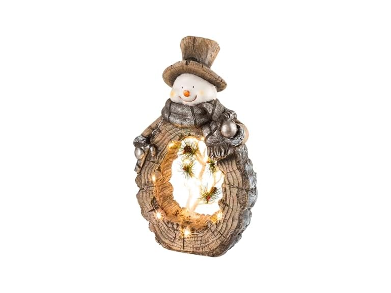 - (1) Alpine Corporation 21" H Indoor/Outdoor Snowman Statue Decoration with Carved Wood Look and LED Lights, Christmas Decoration