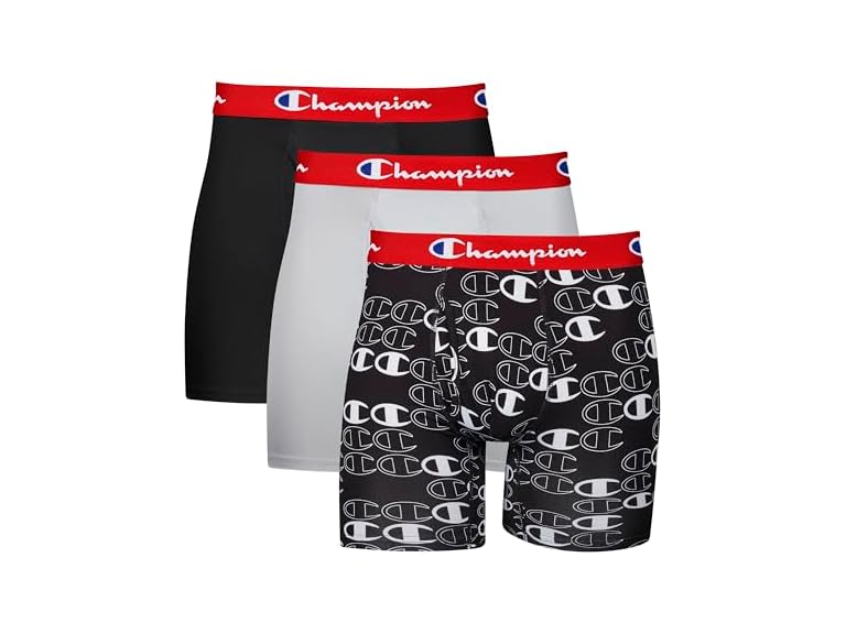 - (1) Champion Men's Athletic Stretch Boxer Briefs, Lightweight Stretch, Moisture-Wicking, No Ride-Up Fit Underwear, 3-Pack, M Oxford GreyBlack