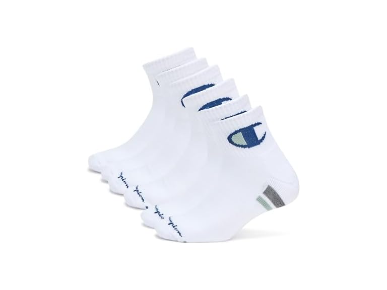 Champion Mens Quarter Socks White Cuff Logo 6Pk