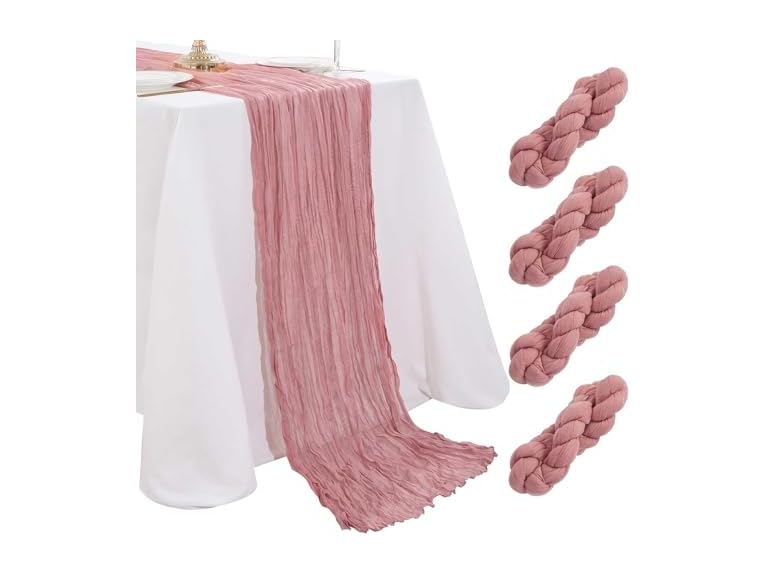 - Cheesecloth Table Runner 4 Packs 36x120 Inches Dusty Rose Table Runners Gauze Table Runner Natural Long Draping for Weddings