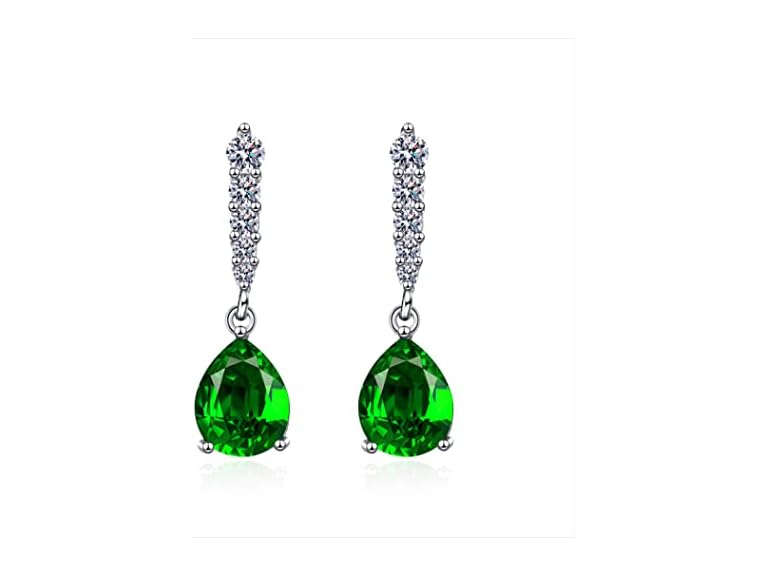 - (1) Chereda Emerald Crystal Dangle Earrings 925 Sterling Silver Green AAA CZ Zircon Waterdrop Stud Earrings Jewelry For Women Wedding Party Gift