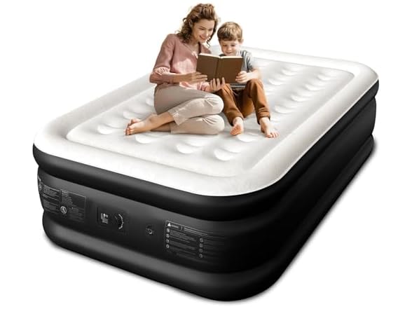 - 2.5-Min Fast Inflation & Deflation: Equipped with a built-in 120V electric pump, this full inflatable mattress with built in pump fully inflates in just 2.5 minutes. Setup is faster than unpacking your overnight bag—and just as easy to pack down into the included carry bag for compact storage