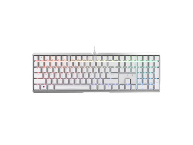 - (1) Cherry MX 3.0S, Wired Mechanical Gaming Keyboard, Robust Aluminum Housing, RGB-Lighting, Full Key Rollover, Anti Ghosting, MX RED Switches, White
